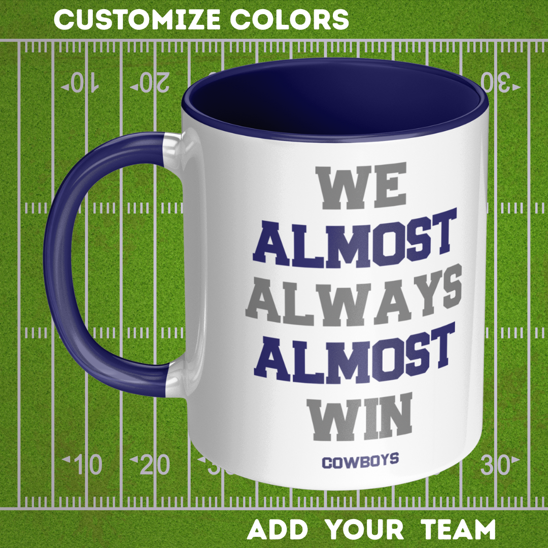 Personalized 11 oz Coffee Mug 'We Almost Win' - Custom Team Colors, Name & Number
