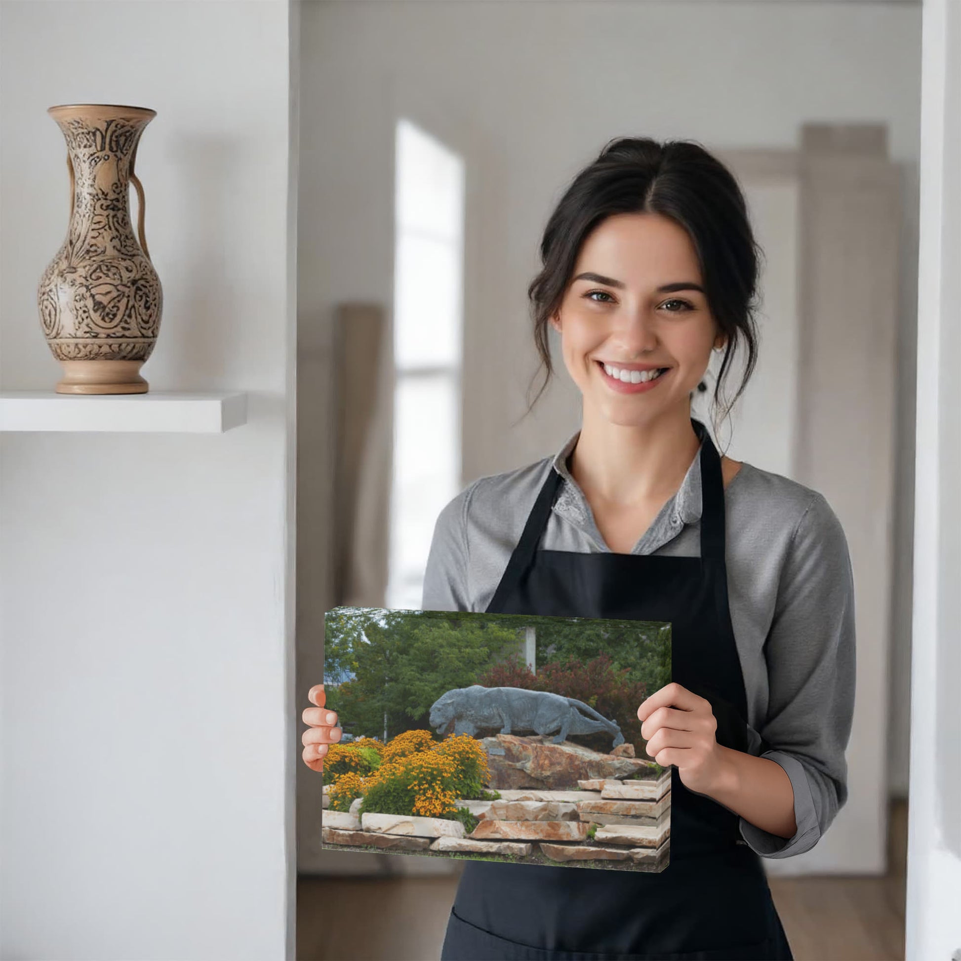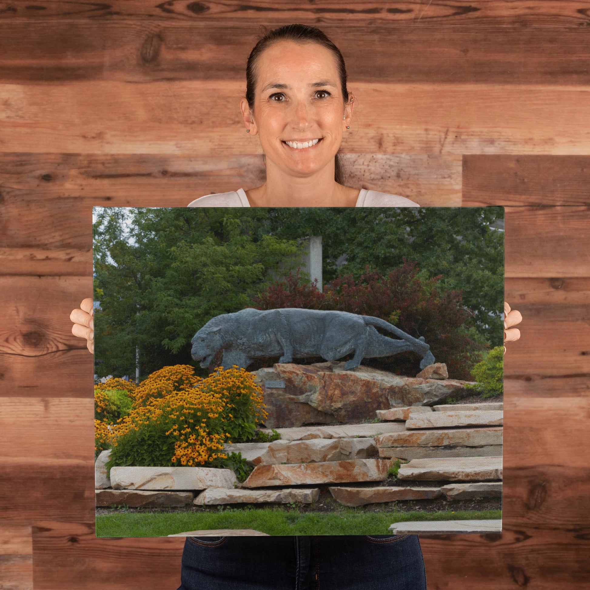 Canvas Wall Art - Statue of a stalking cougar outside the football stadium at Brigham Young University in Provo, city in the western state of Utah