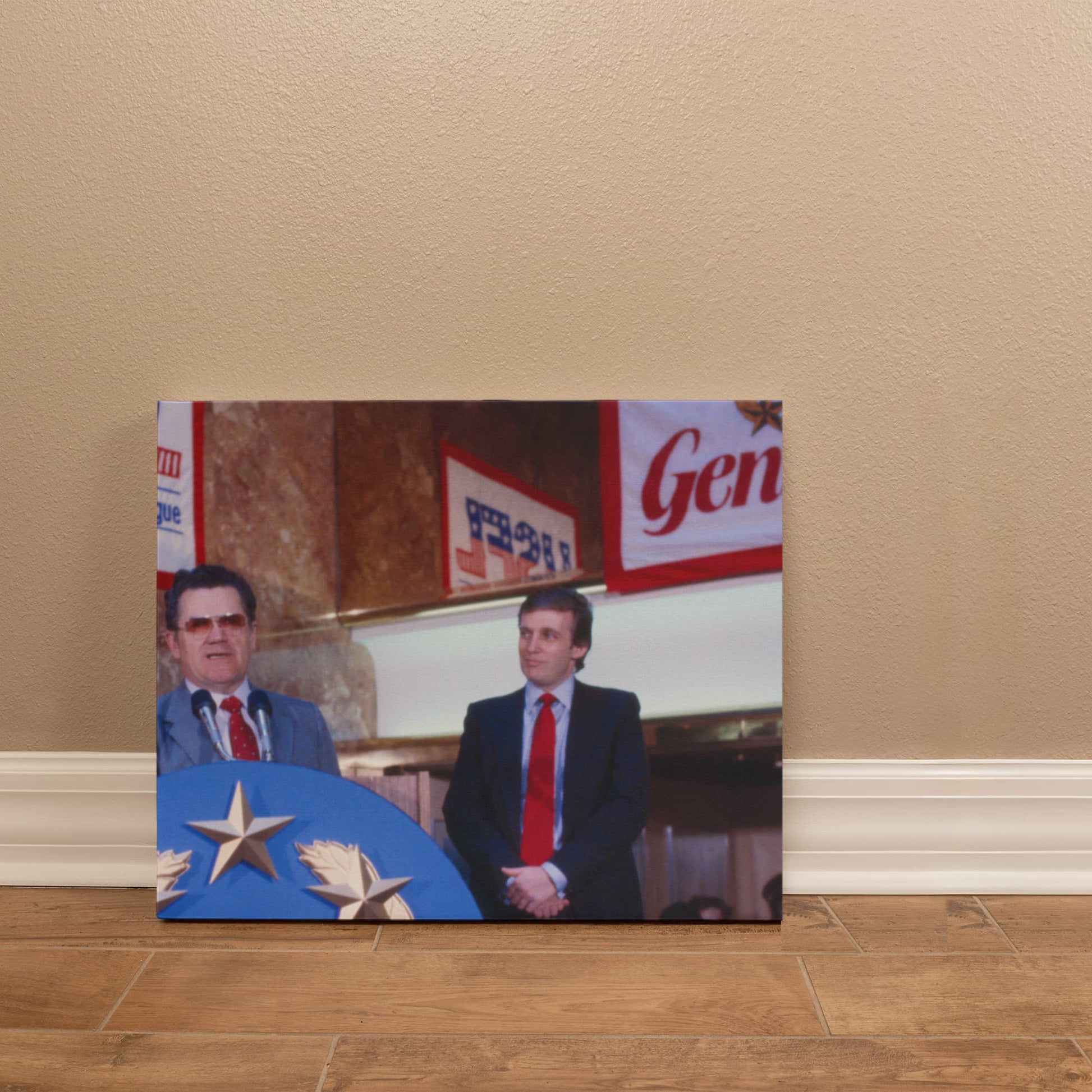 Donald Trump, Generals owner, USFL [and Doug Flutie; press conference at Trump Tower, U.S. football league, New Jersey Generals football]