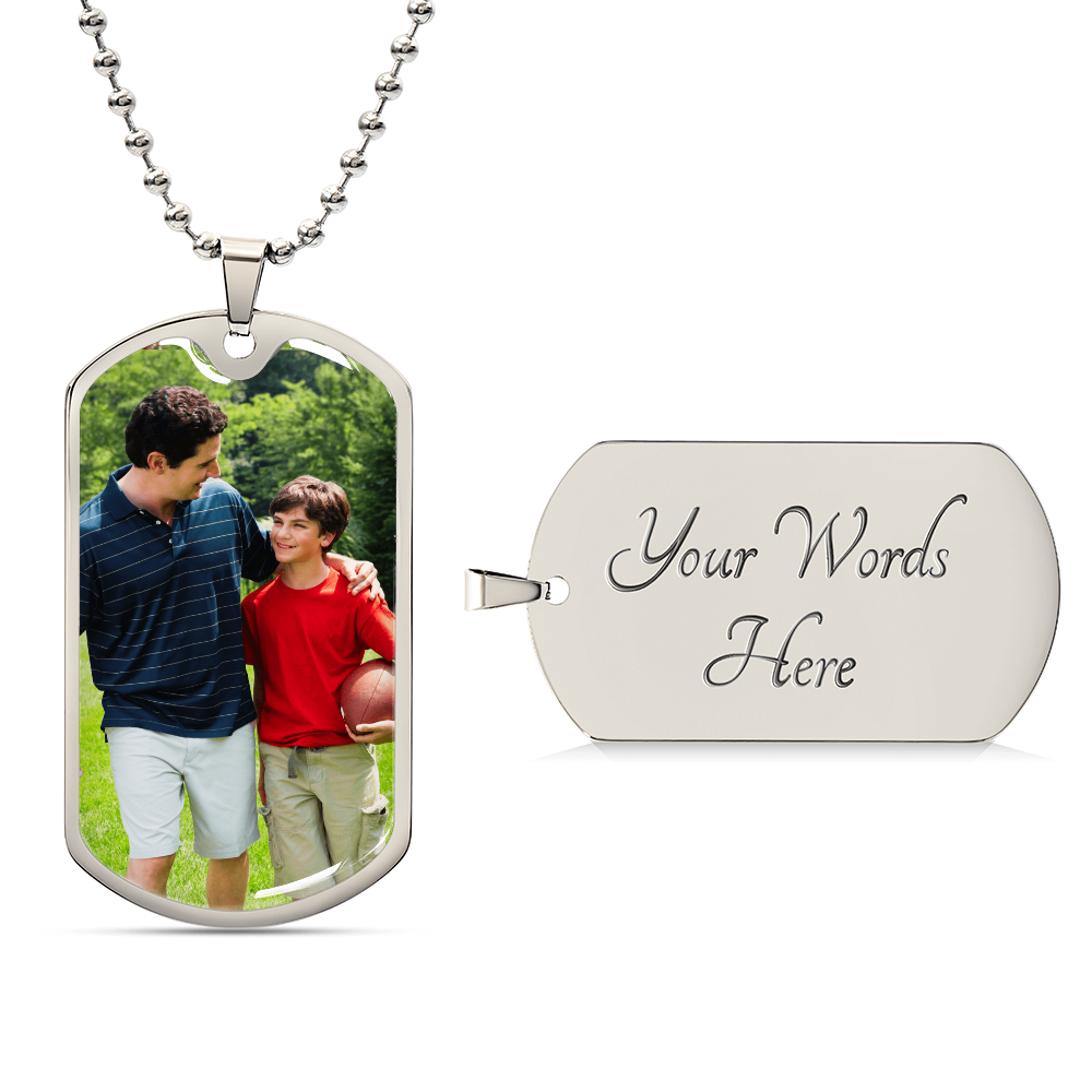 Luxury Military Style Necklace with Custom Engraving and Photo